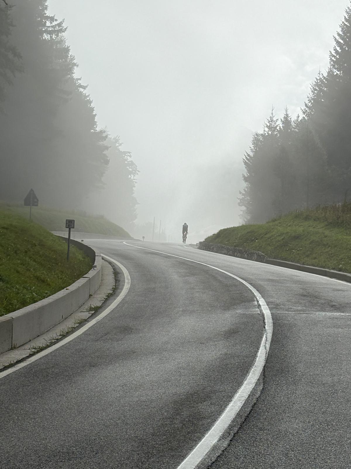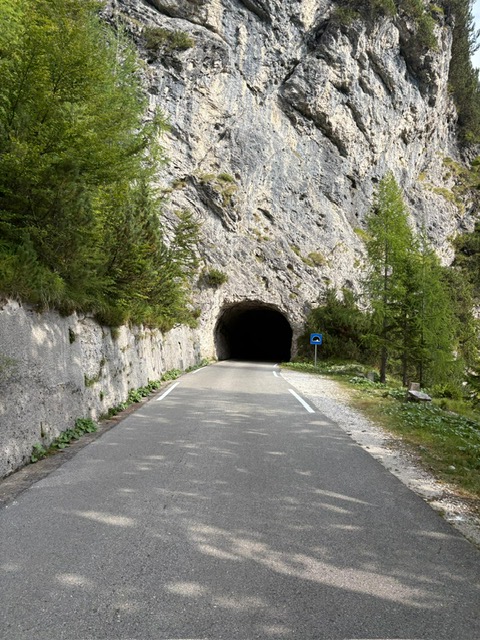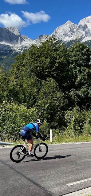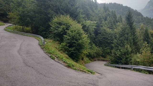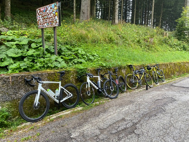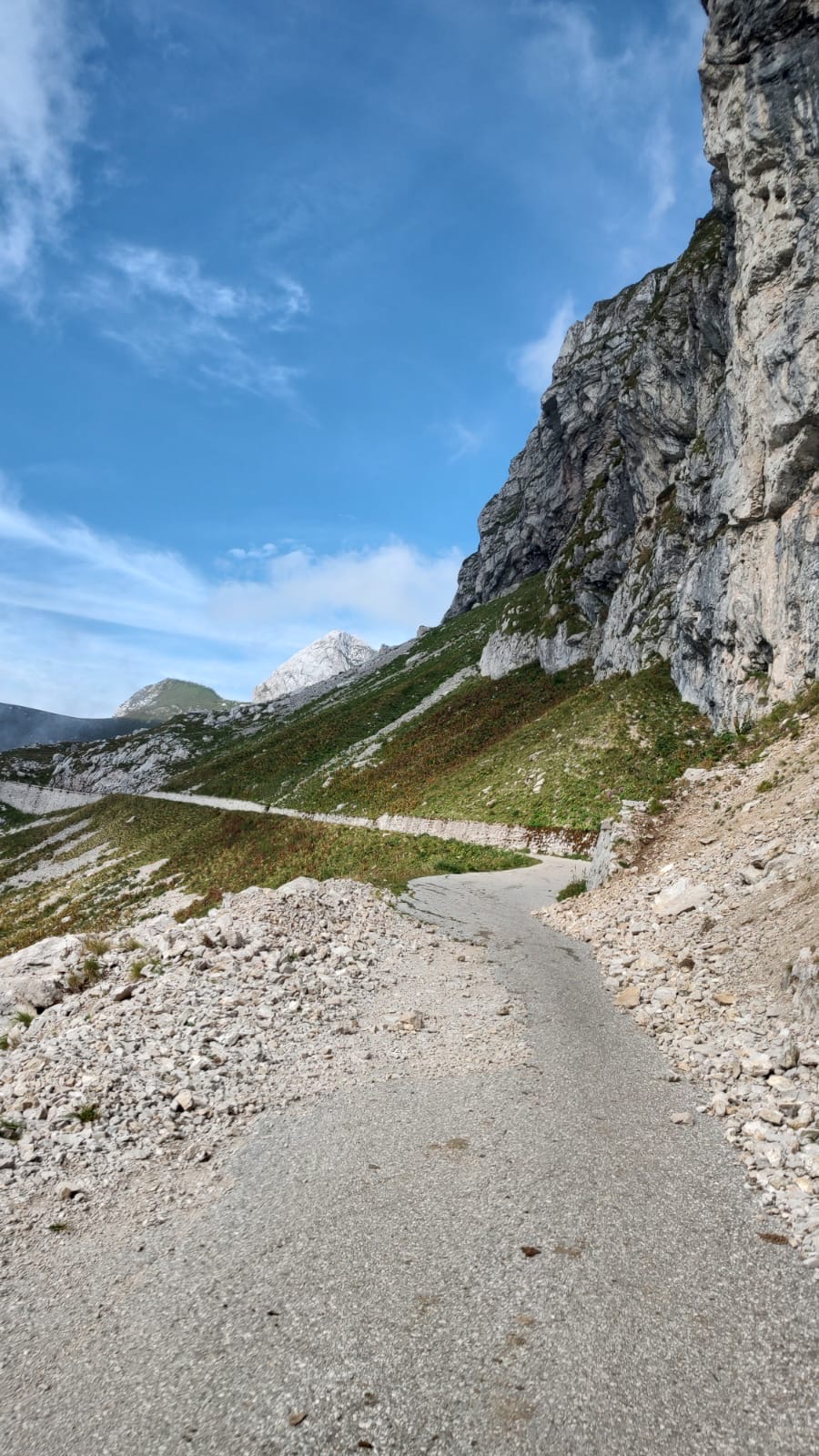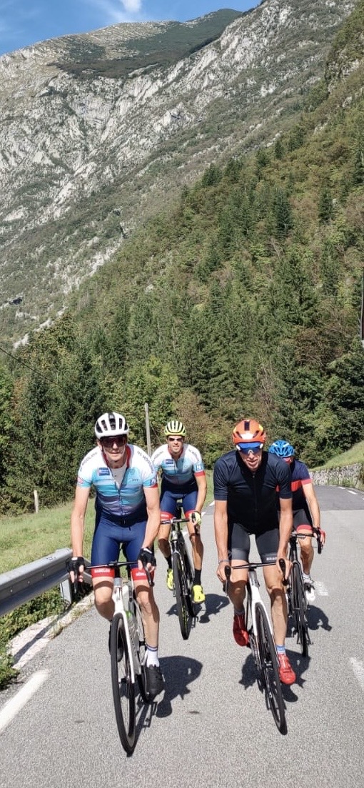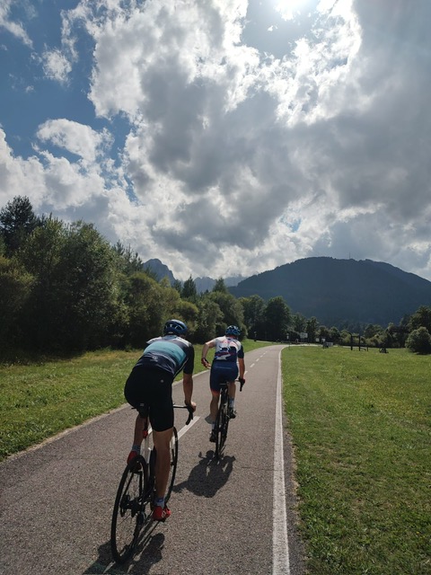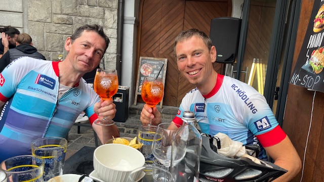 Wirklich lässig war das „Sotschatal“ (Ich find dieses umgedrehte „v“ nicht auf der Tastatur), rein wie raus. Und mein persönliches Highlight: Vom Predel nach Tarvis… (Danke an Gerald, da waren nach oben nicht mehr viele Watt zu holen, super angegast)… Ein moderater 53er Schnitt hat uns zumindest den ersten italienischen Pokal eingebracht, Schampoo! Hatte unterwegs sogar die Zeit, einem Vespa 500er Fahrer in der Kurve beim Überholen Steuertipps (also die, die nicht die Finanz betreffen, ist ja eher Geralds Ding) zu geben. Er war dann aber ein bissl angefressen 😉, komisch! Was kann ich dafür? Nach dem Fahrtechniktraining mit Doppelweltmeister Roland geht’s halt nicht so schlecht. Die (Moto)Biker runter vom Vrsic konnten sich sogar zu einem 👍überreden, als wir sie im Tschcherl wieder trafen, Gerald und ich haben sie anscheinend beim Downhill beeindruckt. (Die waren aber wirklich langsam)…